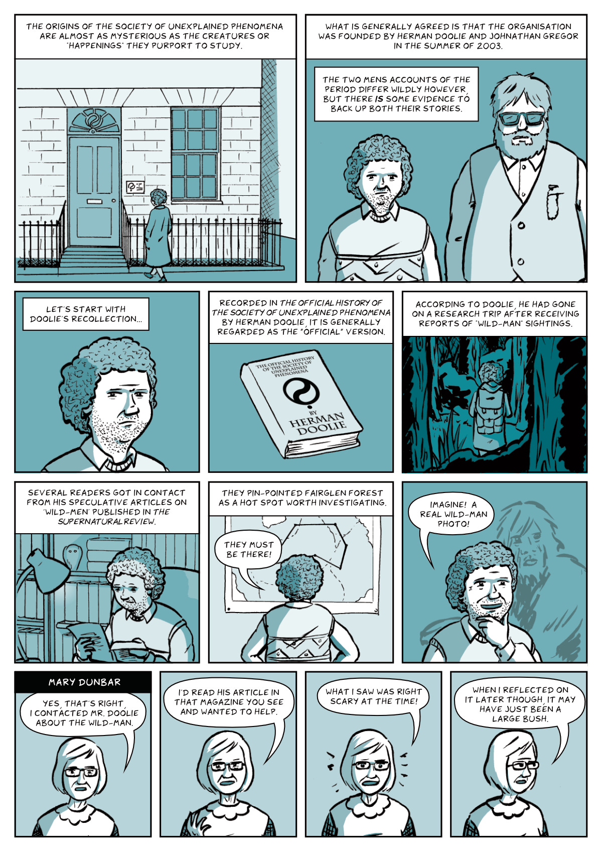 SOUP is about a group of paranormal investigators and how their organisation somehow attracts more speculation and conspiracy theories about itself than the things they study. Here’s a page from it: